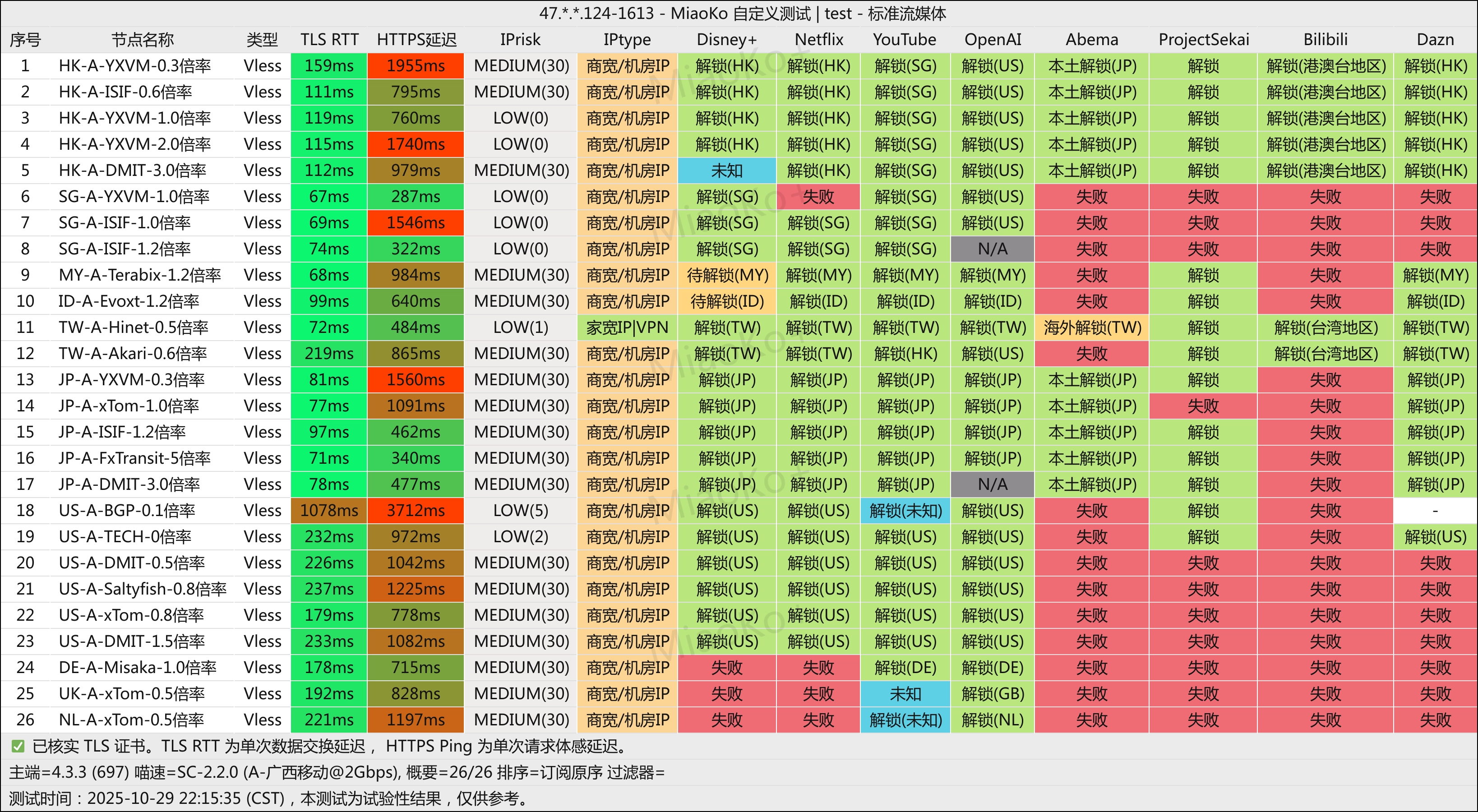 Vless reality的协议直连机场,是CTC机场的分站,这家的落地比较高端,有misaka、dmit、xtom、hinet等。晚高峰速度还可以直连每个节点都不同速度参差是正常的,挑运营商且很看晚高峰情况。如果你是电信用户要买直连机场,更加推荐买这家。直连好的一点是如果不是GFW在敏感日发威一般不会一起挂